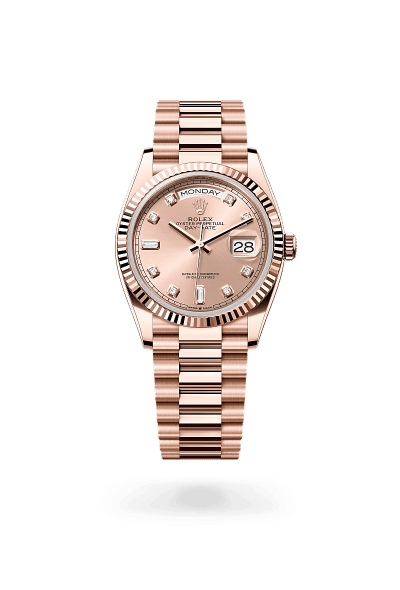At its launch in 1956, the Day-Date was a major innovation: it was the first calendar wristwatch to indicate, in addition to the date, the day of the week spelt out in full in an arc-shaped window at 12 o’clock on the dial – a technical feat at the time. Made exclusively of precious metals – 18 ct yellow, white or Everose gold or 950 platinum – and accompanied by its emblematic President bracelet, its multiple dials make it the ideal canvas for self-expression.