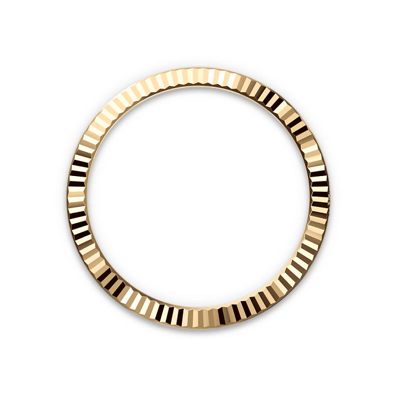 The Rolex fluted bezel is a mark of distinction. Originally, the fluting of the Oyster bezel had a functional purpose: it served to screw the bezel onto the case helping to ensure the waterproofness of the watch. It was therefore identical to the fluting on the case back, which was also screwed onto the case for waterproofness, using specific Rolex tools. Over time, the fluting became an aesthetic element, a genuine Rolex signature feature. Today the fluted bezel is a mark of distinction, in gold on this Datejust 41.