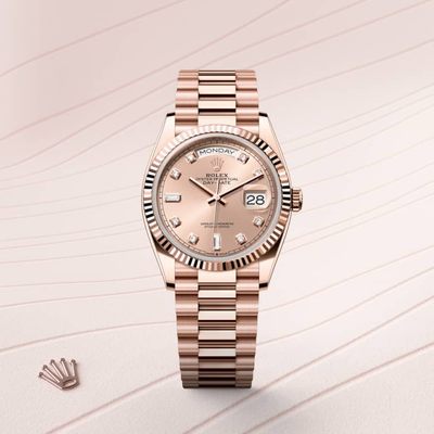 To preserve the beauty of its pink gold watches, Rolex created and patented an exclusive 18 ct pink gold alloy cast in its own foundry: Everose gold. Introduced in 2005, 18 ct Everose is used on all Rolex Oyster models in pink gold.