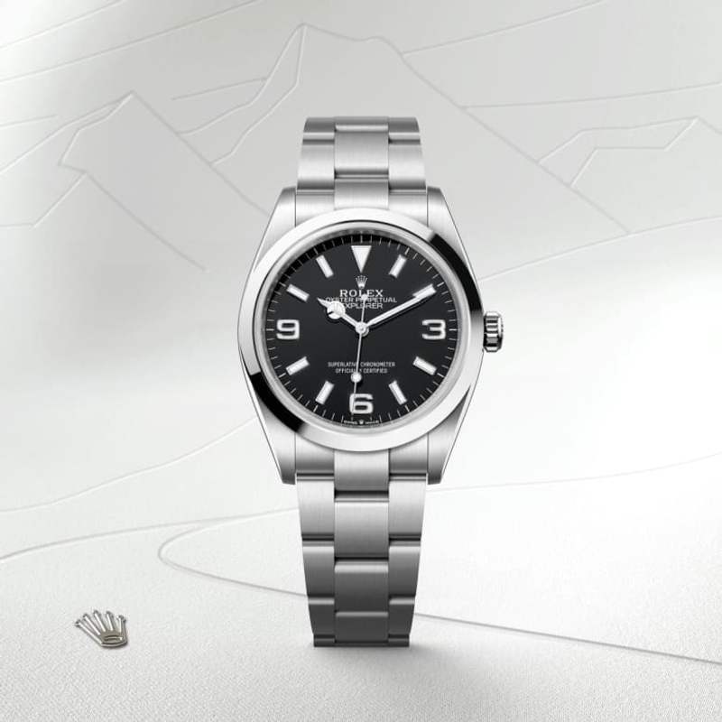 The Oyster Perpetual Explorer 36 imparts a fresh elan to the sober, clean lines that have long established it as an icon. The smooth bezel in Oystersteel is robust yet elegant, and in perfect harmony with the Explorer’s iconic heritage.