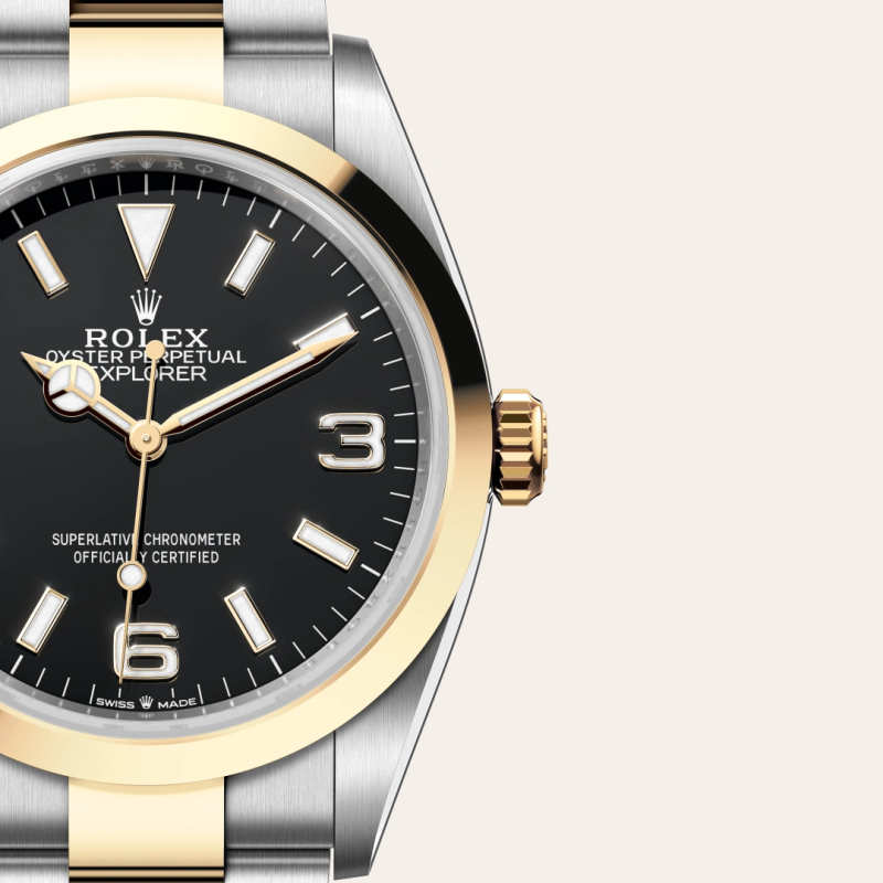 Gold is coveted for its lustre and nobility. Steel reinforces strength and reliability. Together, they harmoniously combine the best of their properties. A true Rolex signature, Rolesor has featured on Rolex models since the early 1930s, and was trademarked as a name in 1933. It is one of the prominent pillars of the Oyster Perpetual collection.