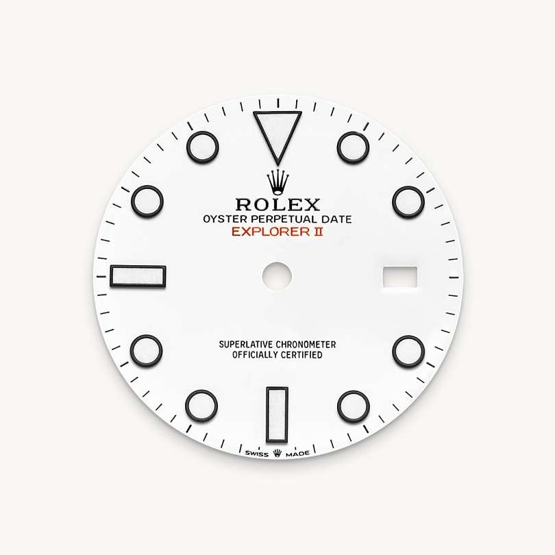 The Explorer II features a date display, an additional orange 24-hour hand and a fixed bezel with 24-hour graduations, enabling day to be distinguished from night. It became the watch of choice for speleologists, volcanologists and polar explorers. Its hour markers and hands feature a highly-legible Chromalight display with long-lasting blue luminescence.