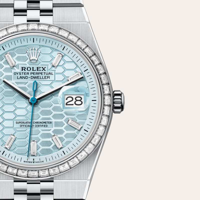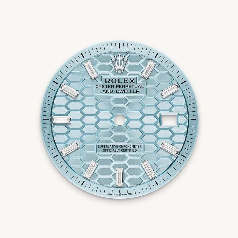 Rare and precious, platinum is striking for its silvery whiteness and vibrant luminosity. It is among the densest and heaviest metals in the world, distinguished by unique chemical and physical properties such as exceptional corrosion resistance. Paradoxically, it is also soft, elastic and highly malleable, which makes machining and polishing especially difficult, demanding an extremely high degree of skill. Rolex always uses 950 platinum, an alloy consisting of 950‰ (thousandths) platinum, painstakingly crafted in-house by the fine metalworkers at Rolex. The noblest of metals for the finest of watches.