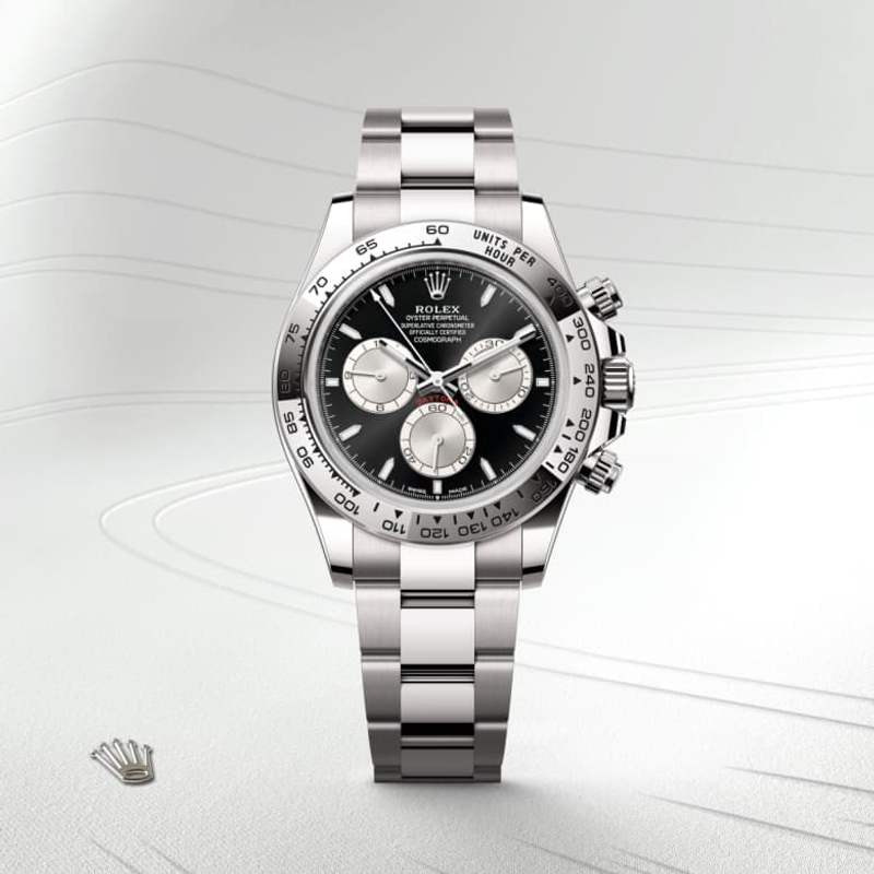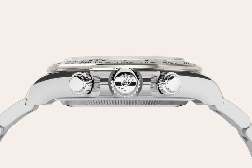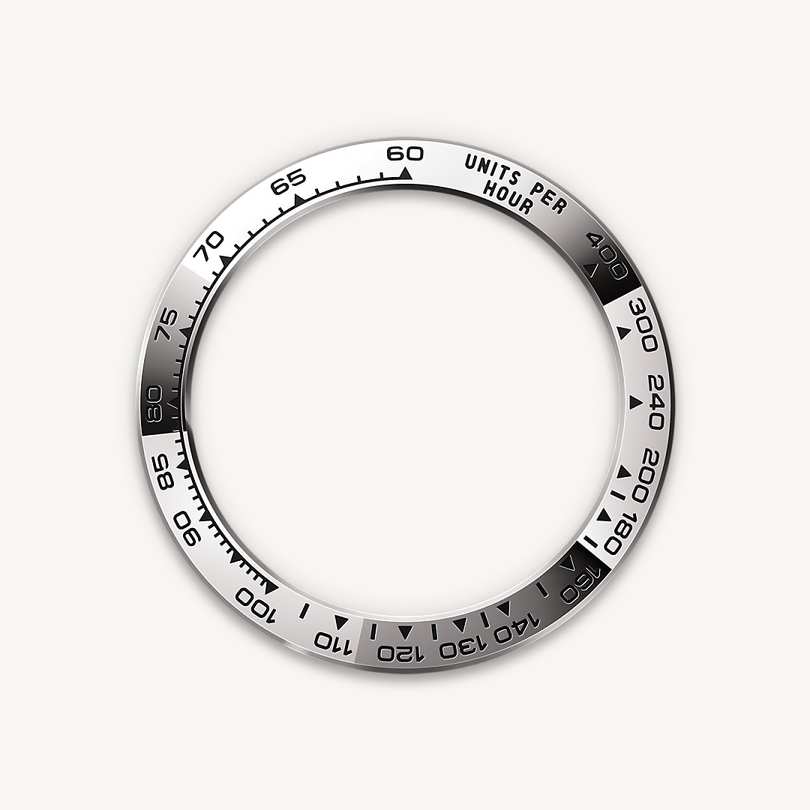 With its tachymetric scale, its three counters and its pushers, the Cosmograph Daytona was designed to be the ultimate timing tool for endurance racing drivers. The bezel features a tachymetric scale to read average speed over a given distance based on elapsed time. This scale offers optimal legibility, making the Cosmograph Daytona the ideal instrument for measuring speeds up to 400 units per hour, expressed in kilometres or miles.