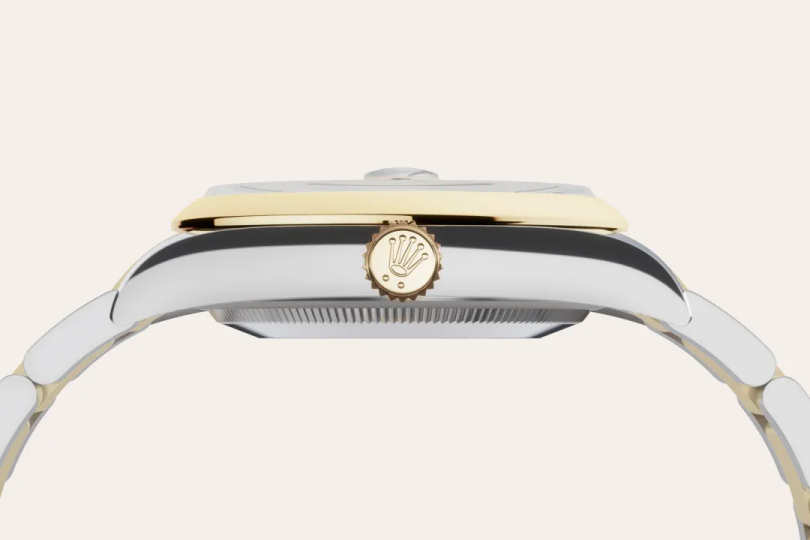 Gold is coveted for its lustre and nobility. Steel reinforces strength and reliability. Together, they harmoniously combine the best of their properties. A true Rolex signature, Rolesor has featured on Rolex models since the early 1930s, and was trademarked as a name in 1933. It is one of the prominent pillars of the Oyster Perpetual collection.