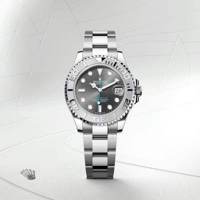 Many Rolex watches are available with the now-legendary combination of yellow, white or Everose gold and steel known as Rolesor, but Rolesium is a creation specific to the Yacht-Master. While the case and bracelet are in rugged Oystersteel, the bezel of the Rolesium versions is made of platinum, imparting a silvery whiteness and vibrant luminosity for an unmistakable sense of luxury.
